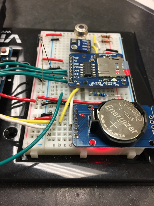 Adafruit MicroSD card to save data using the SPI interface. Wiring set up.