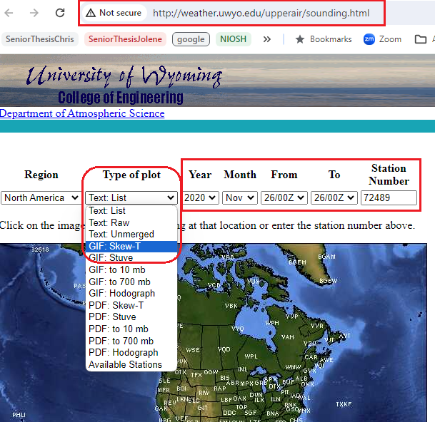 3. Gather both the morning (12Z on the day of) and afternoon (0Z on the day after, making it 4 pm local time on the day of) to look at the evolution of the atmosphere during the day.