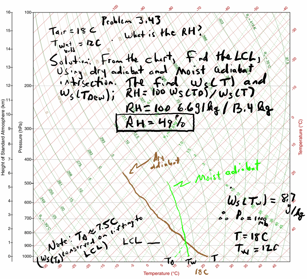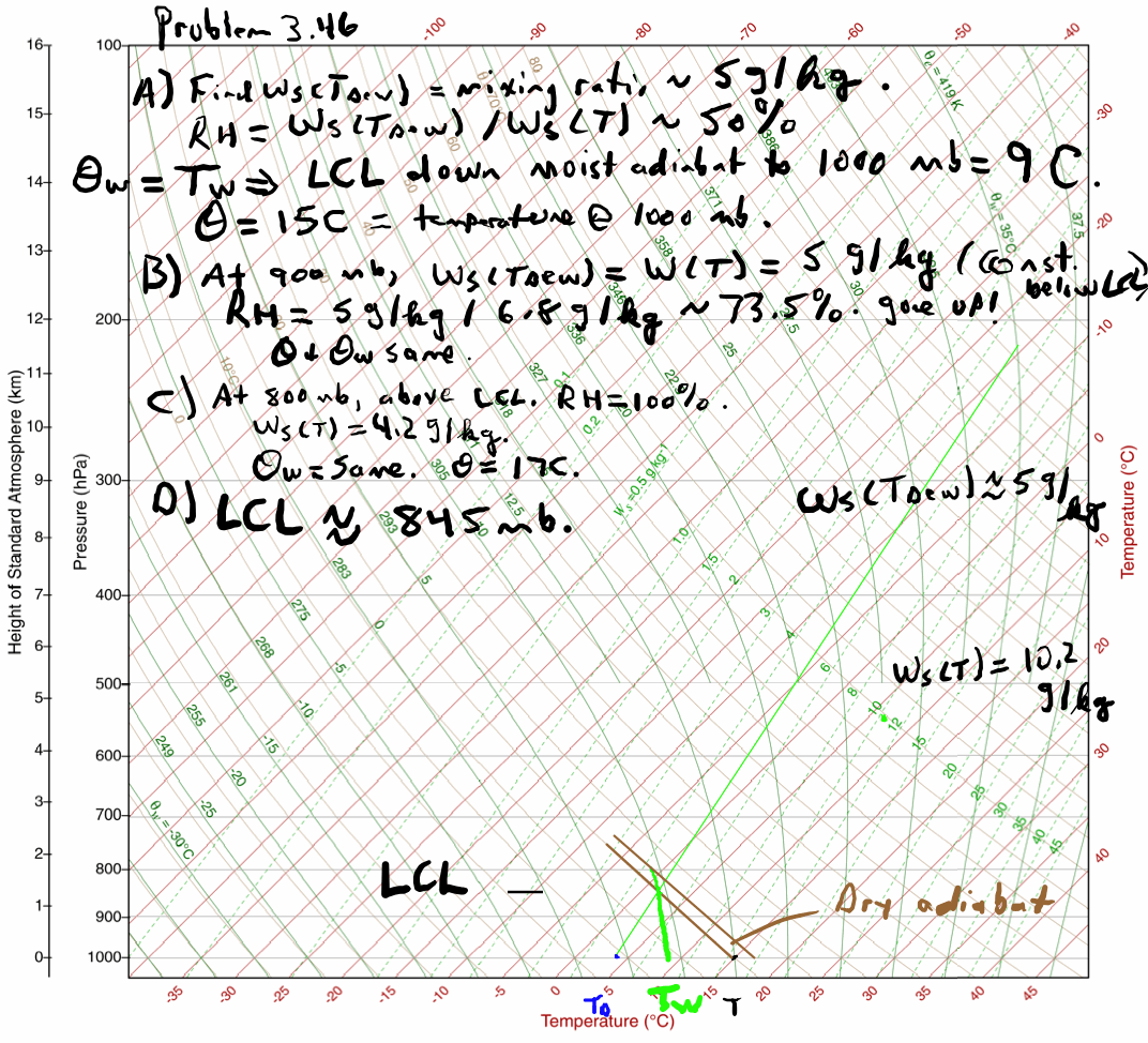 Homework 5 . Do problem 3.43, 3.45, 3.46, (see problem 3.48 for an example you can try too), 3.53, and 3.55. Print out and use skew T log P charts whenever you can. See also another solution for this problem set and the skew T's that go with it.