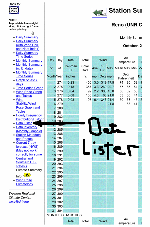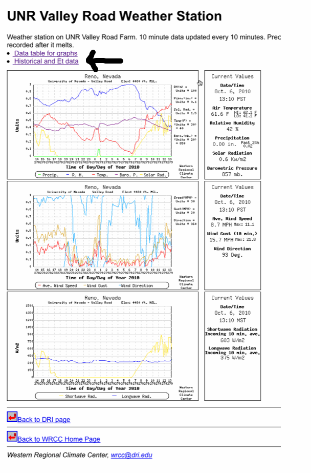 0. Calculate the time series of dew point temperatures for the DRI and UNR sites for the month of September from your spread sheet you have used in previous assignments. Make a time series graph and interpret it.