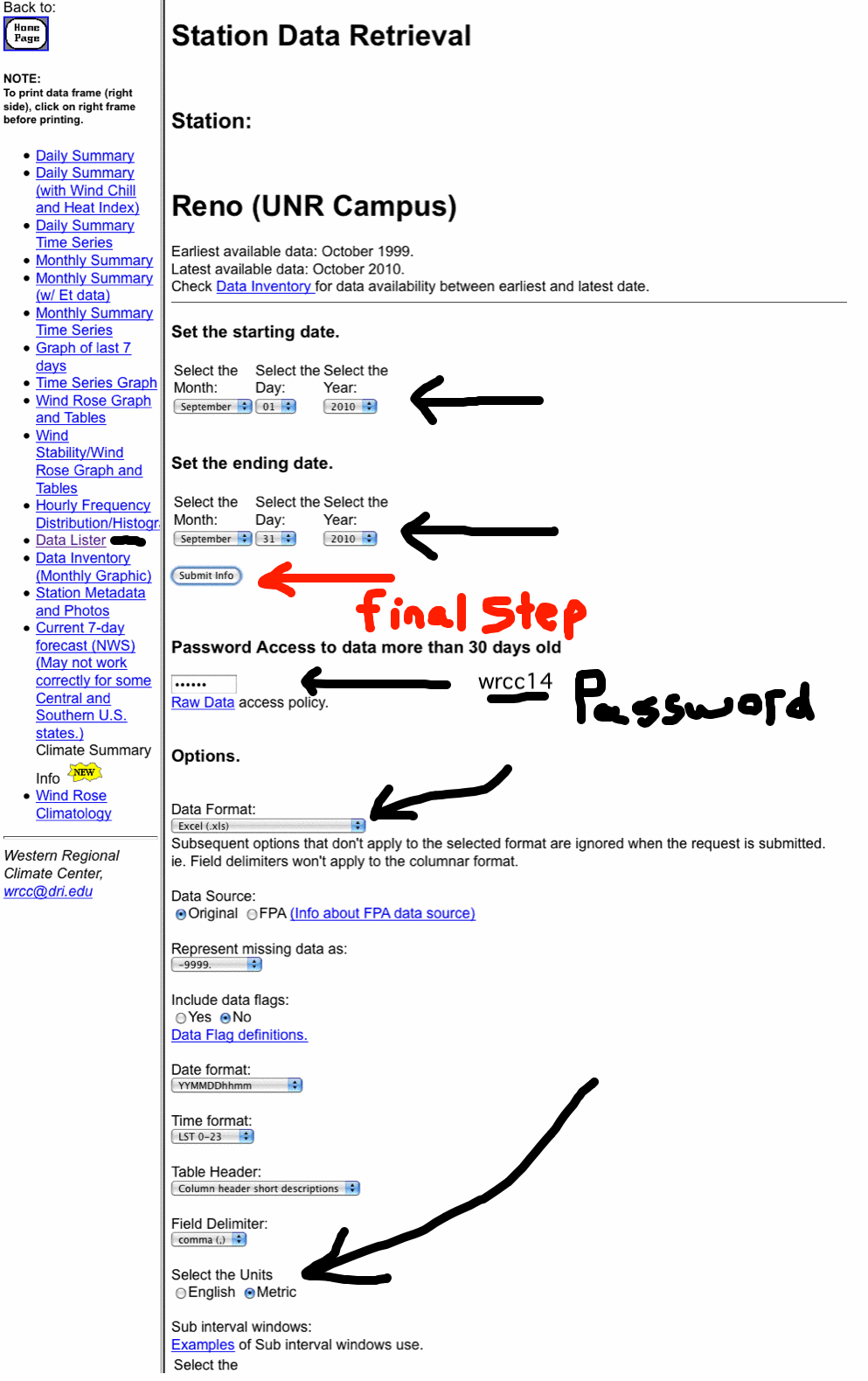 in Reno is 143 meters. Obtain data from these two sites (from the