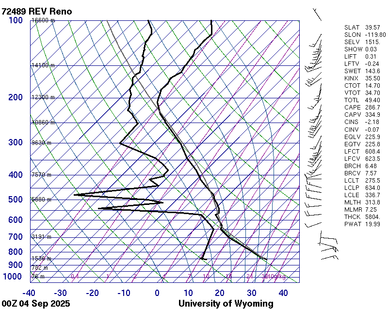 Simplified Reno example soundings with a simplified skewT-logP diagram for the end of August and early September 2024.