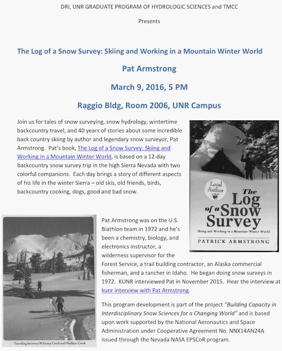 Ideally they will bring the 3 wavelength instrument from DRI to UNR for testing and/or calibration.A collective presentation (from everyone) will report on your development and findings.