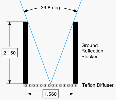 The geometric blocking of radiation amount was estimated to be a factor of 8.631 (squared sine of the acceptance half angle, using the radiation shield geometry).