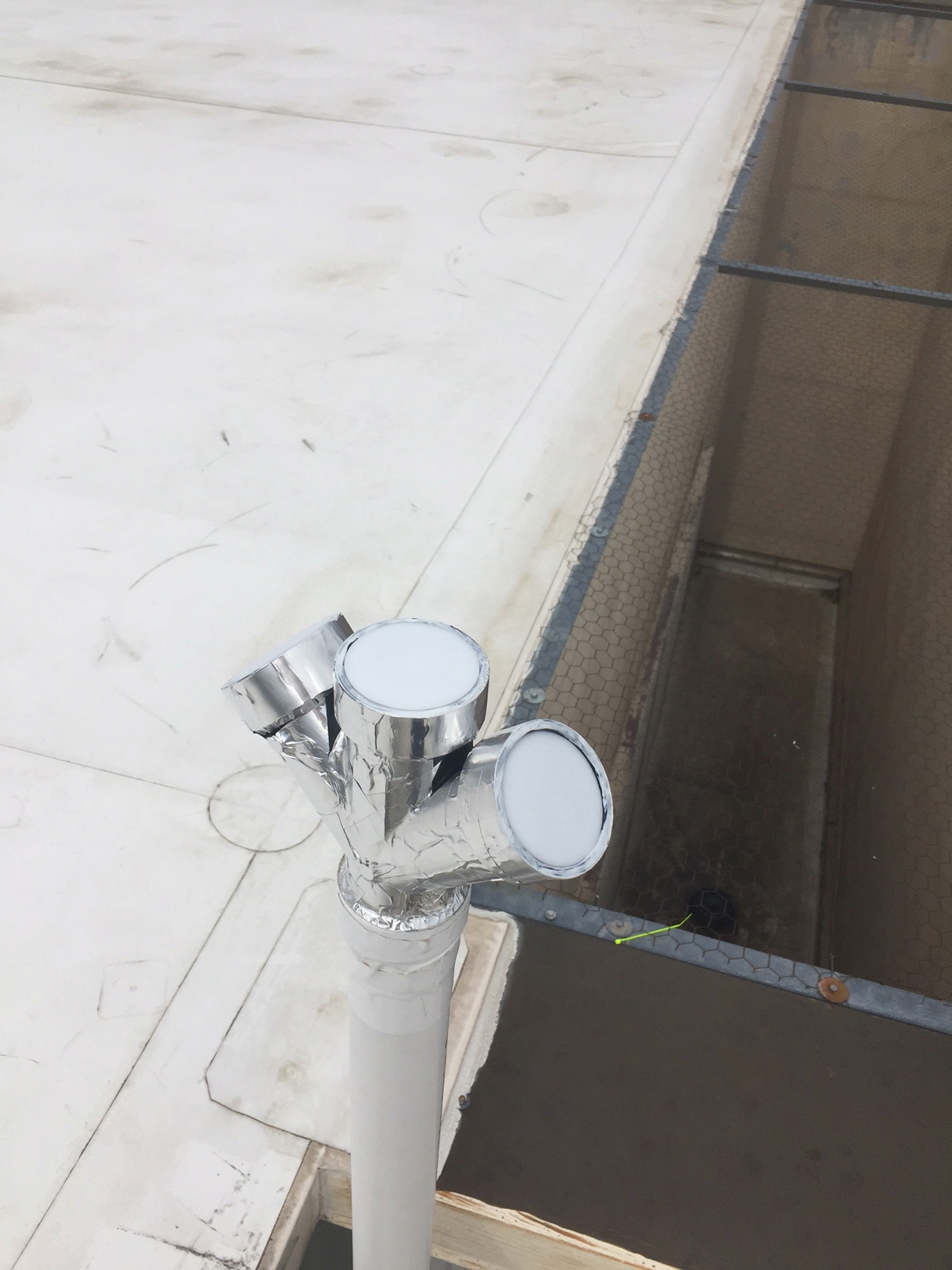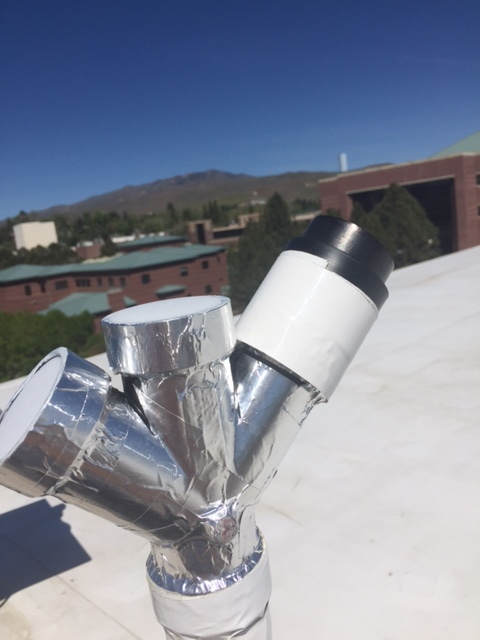 Sensor head: North, overhead, and south facing. North and south facing may have 'shrouds' installed as a test, later, to investigate reduction of surface reflection contribution.