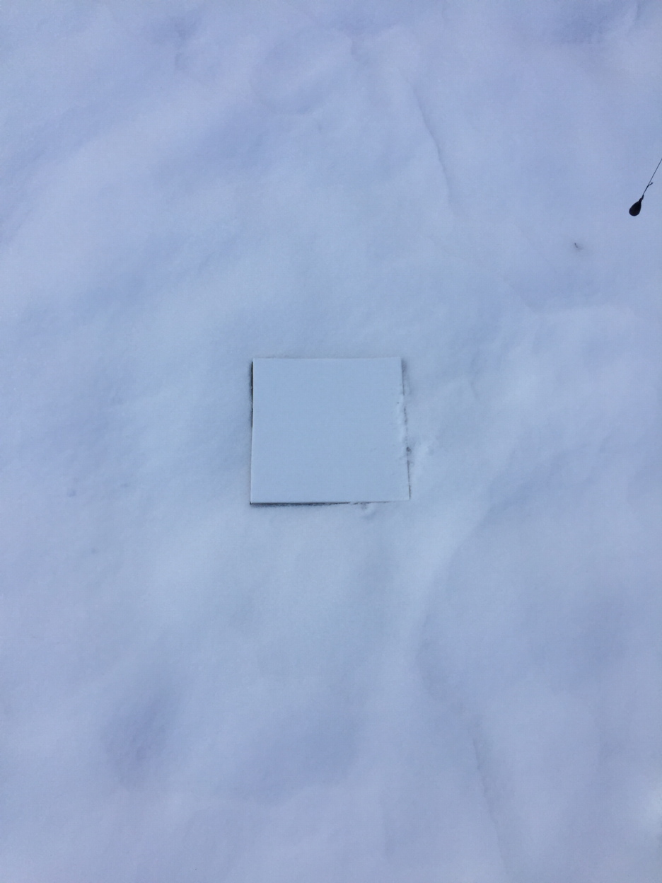 Diffusely illuminated reflection backed teflon target on day old snow. (in the shadow of the Physics building.)