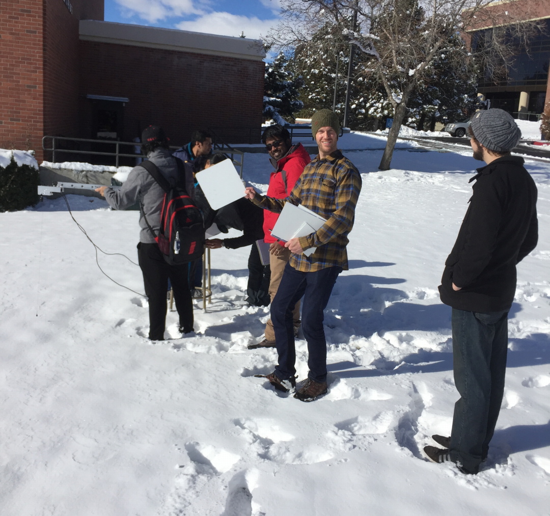 1 February 2016 class took advantage of fresh snow to measure snow albedo (we will all do the albedo lab together soon).
