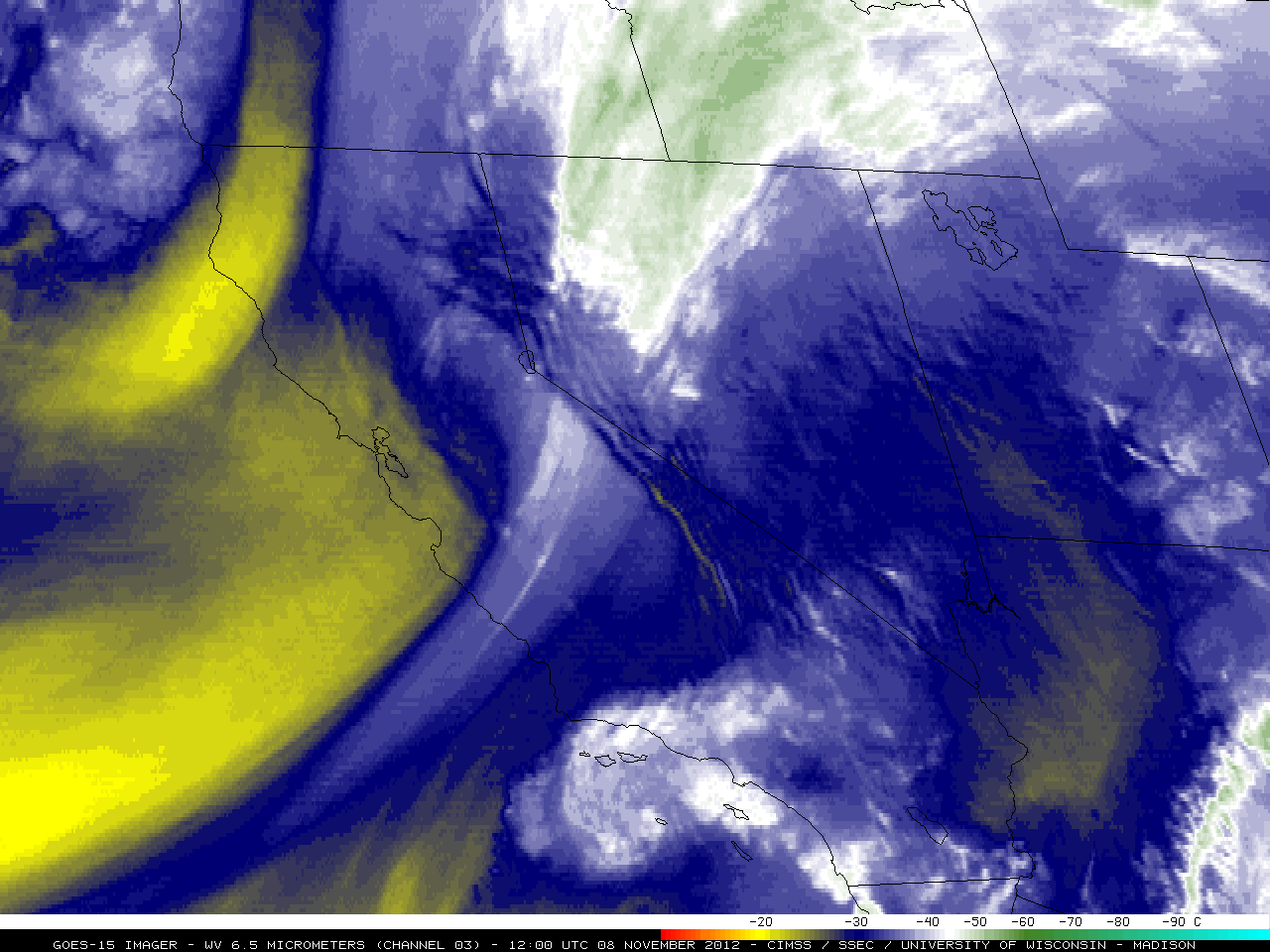 Intrepretation of water vapor imagery downwind of mountain ranges (like the Sierras). (Animation from it).