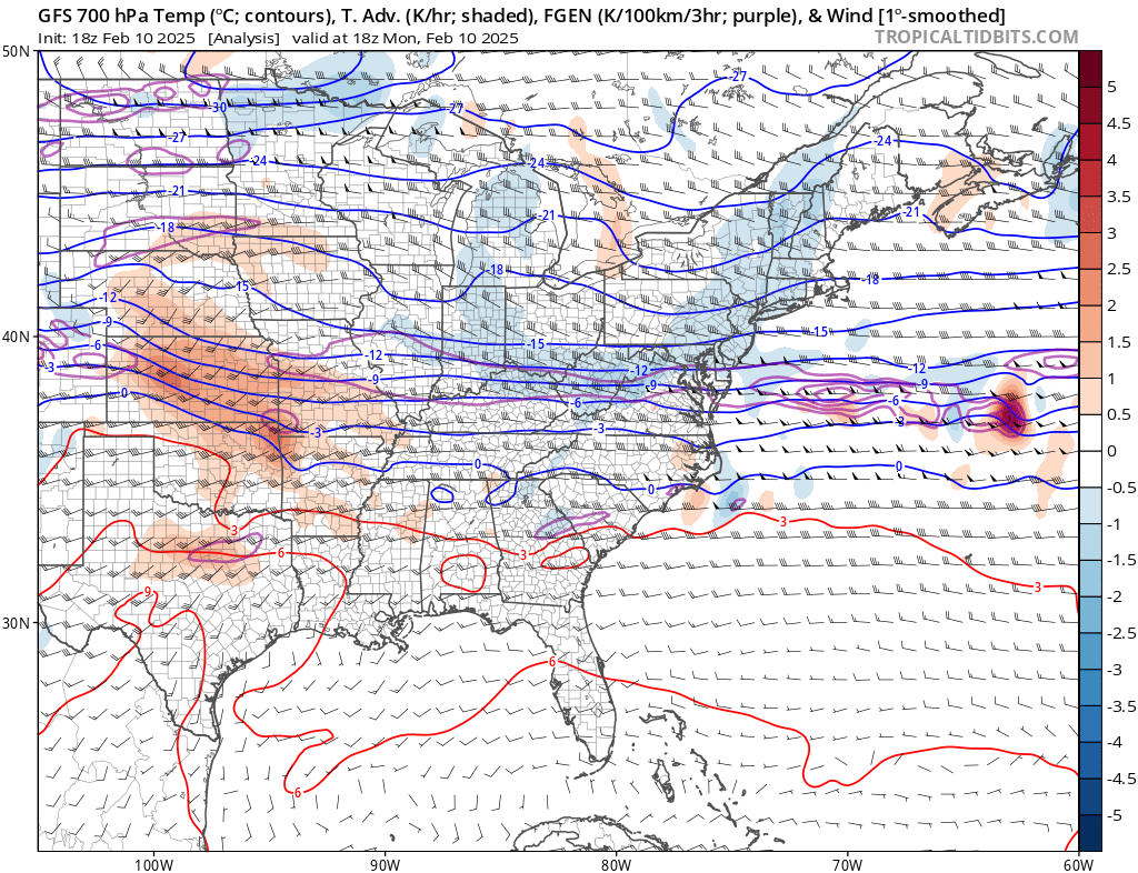 Example of vertical wind for the 700 mb surface for the continental US from the Pivotal weather site.