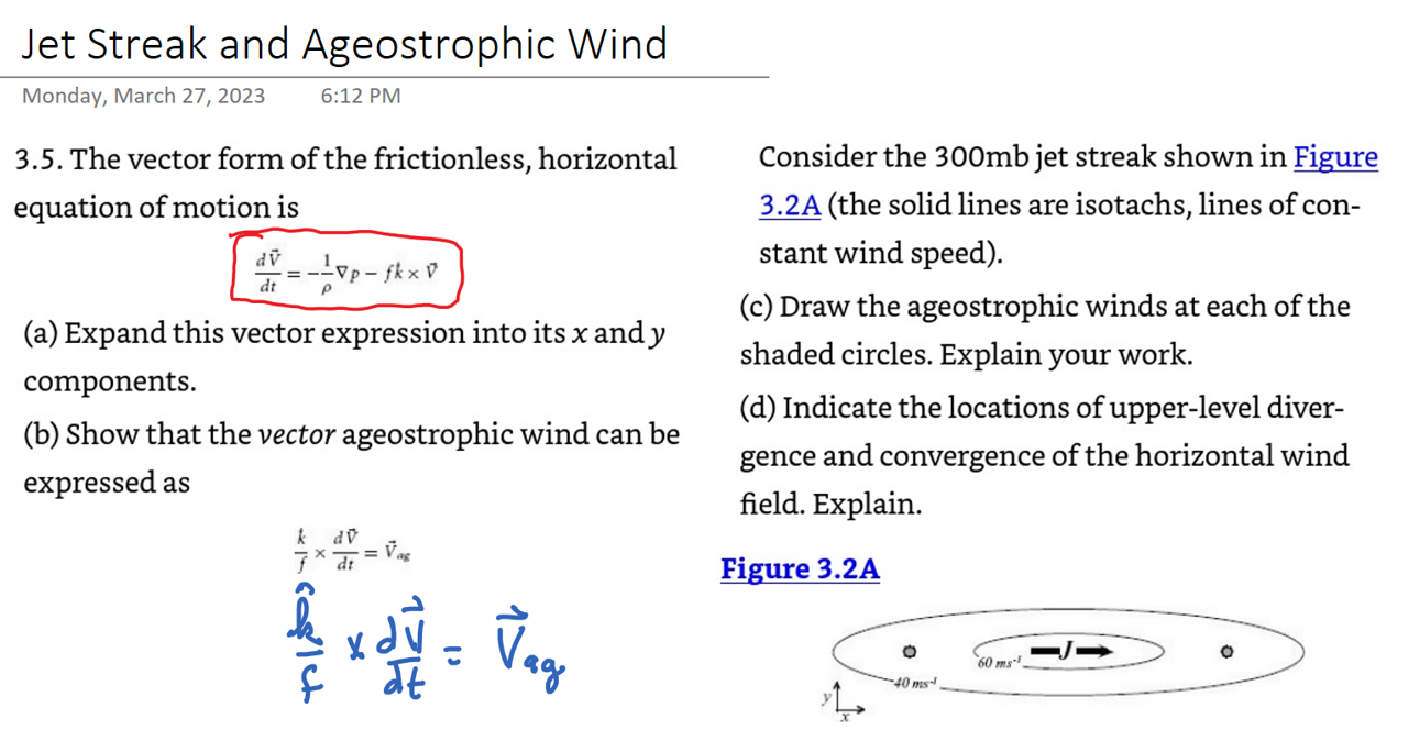 Started divergence of the geostrophic wind derivation and interpretation, problem 3.2.