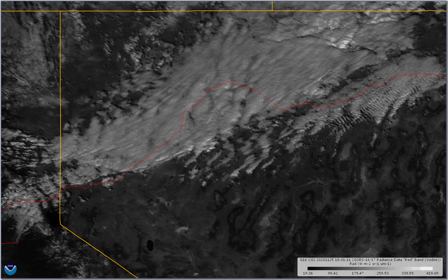GOES satellite imagery for 11/25/2020 LST showing wave clouds.