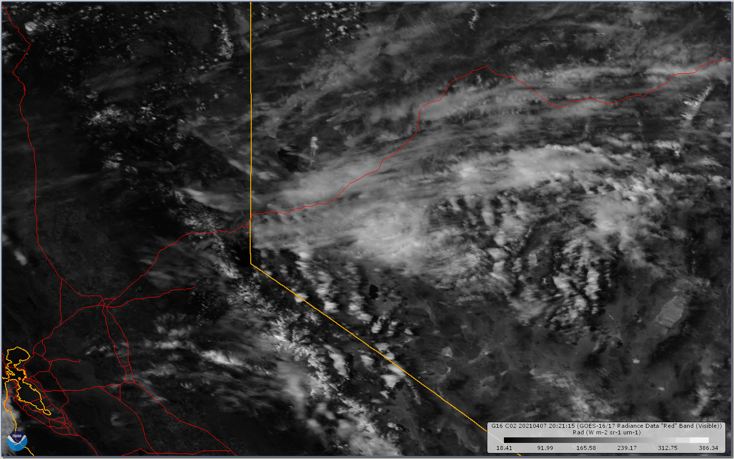 TOPIC 9: Look at the cloud under solar illumination during daylight hours by making a moving from the NOAA Weather and Climate Toolkit. That will make use of channel 1 data.