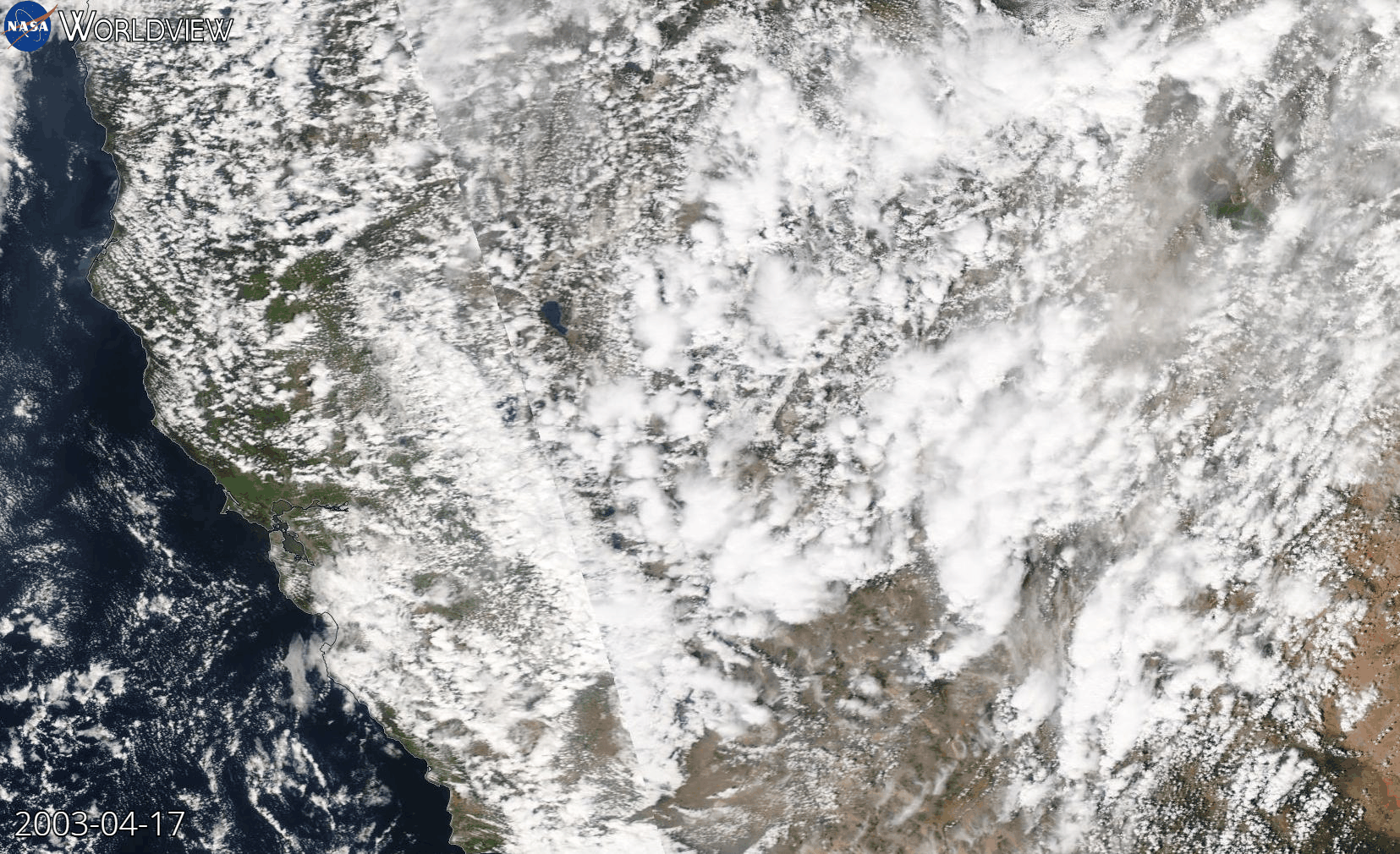 Afternoon NASA/AQUA/MODIS satellite imagery for the southwest US for April 17th, 2003-2021 to show regularity of the events.