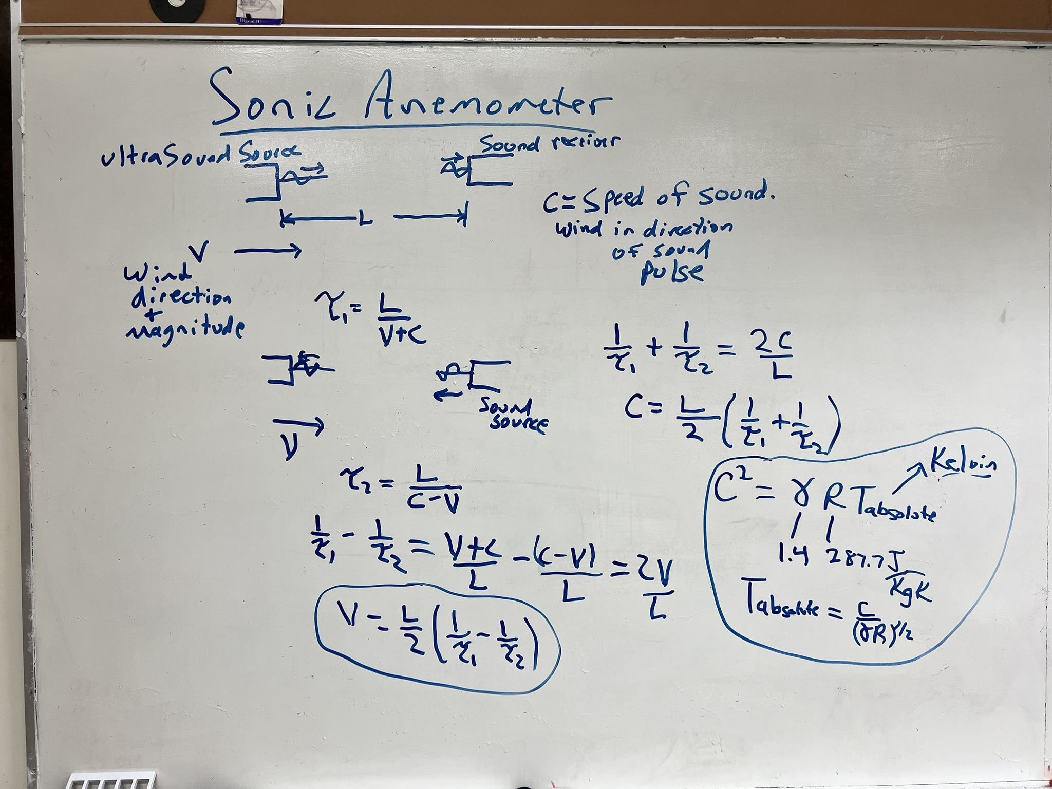 Sonic anemometer measurement discussion. (Whiteboard notes).