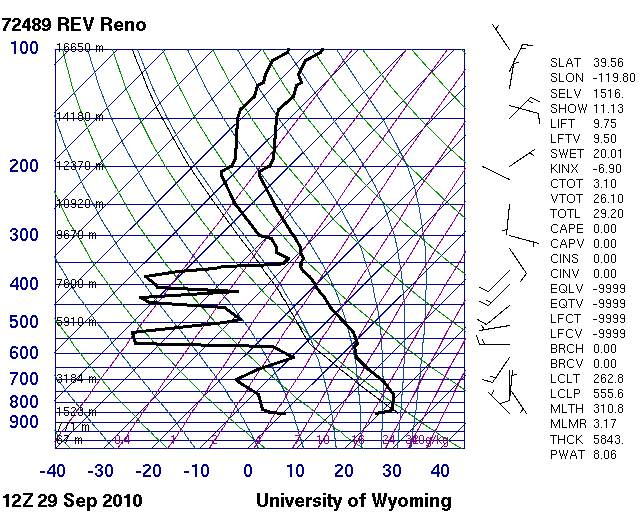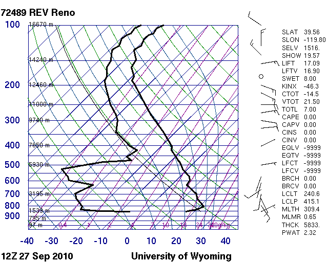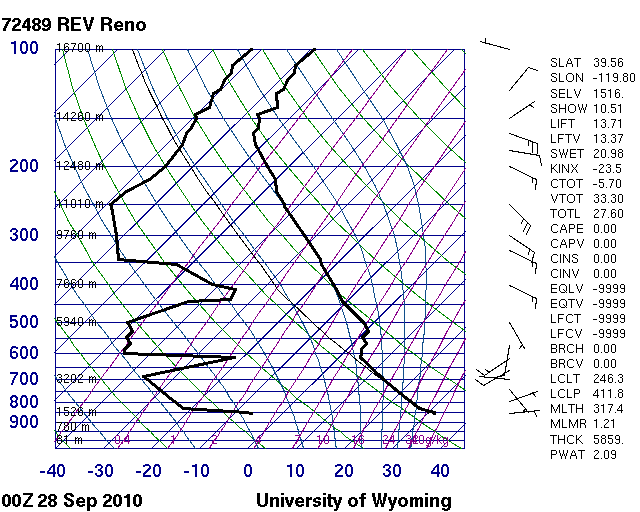 And check out the even drier sounding at 4 pm on the 27th of Sept 2010.Skew T Log P for Lamont Oklahoma, DOE Atmospheric Research Facility Area, January 2010 and July 2010