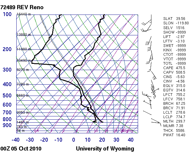 Weather for Reno October 1 through 12th. skew Ts Hodographs ground based station condensed version of ground based station NOTES: