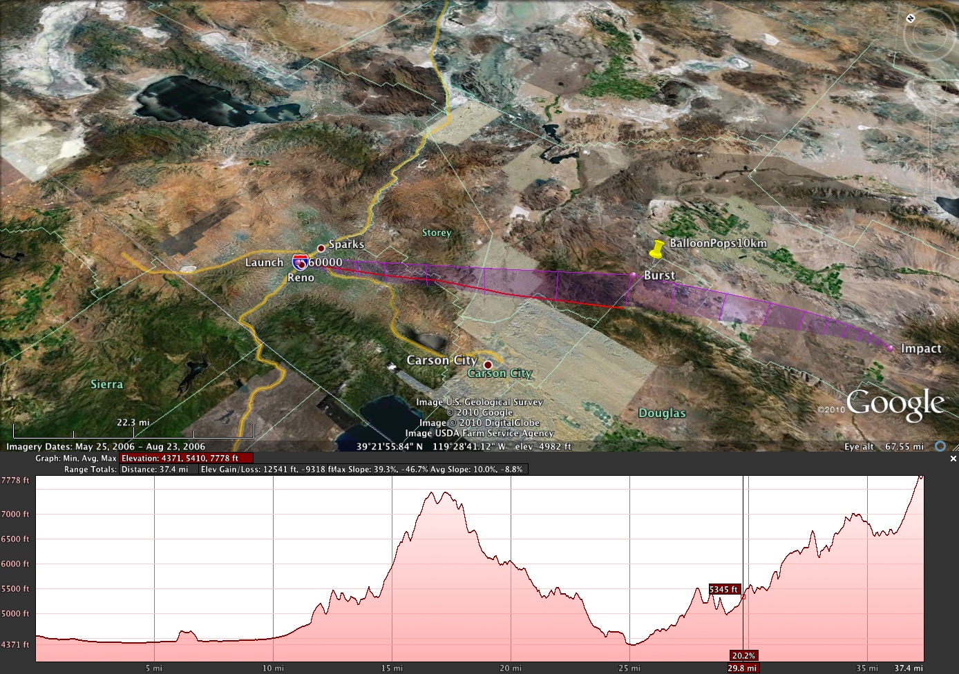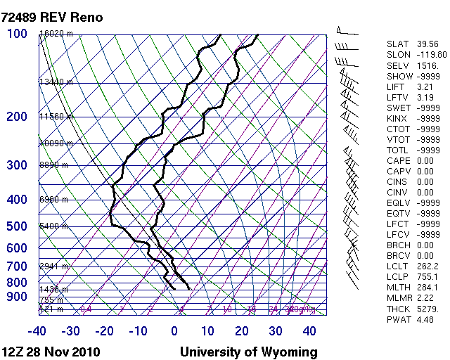 Atmospheric Sounding Data from UWyo. Balloon Trajectory Calculation Reno = 39.5386 lat -119.8171 Lon |