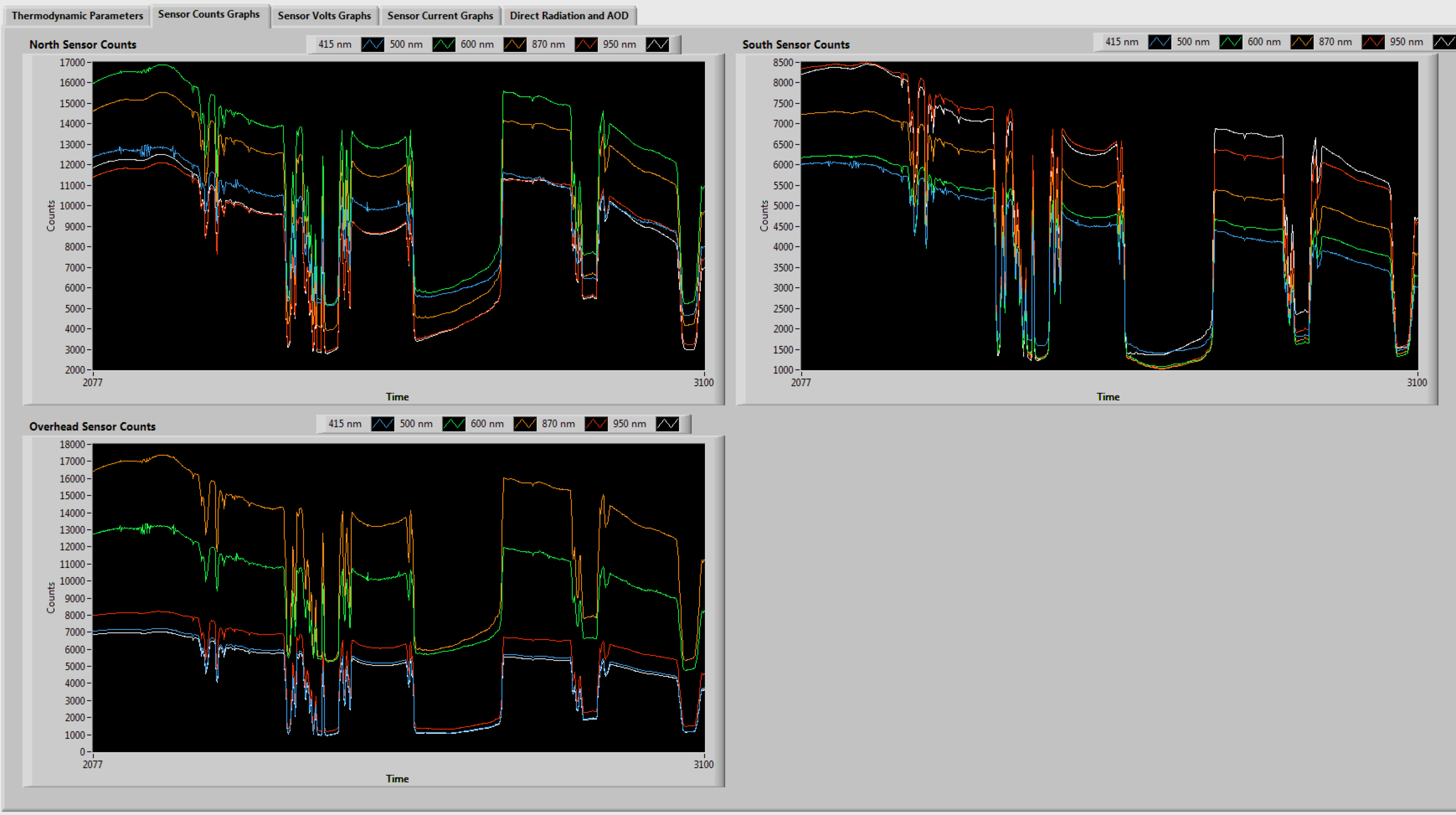 For data before this time it is best to concentrate on the North and Sound sensors, not the overhead sensor, and the Overhead 870 nm sensor (and use 415 nm as 950 nm).