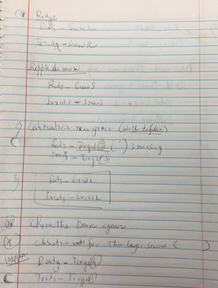 Here are some target photos Image 1, with the snow, to see if cameras give a simple albedo measurement.