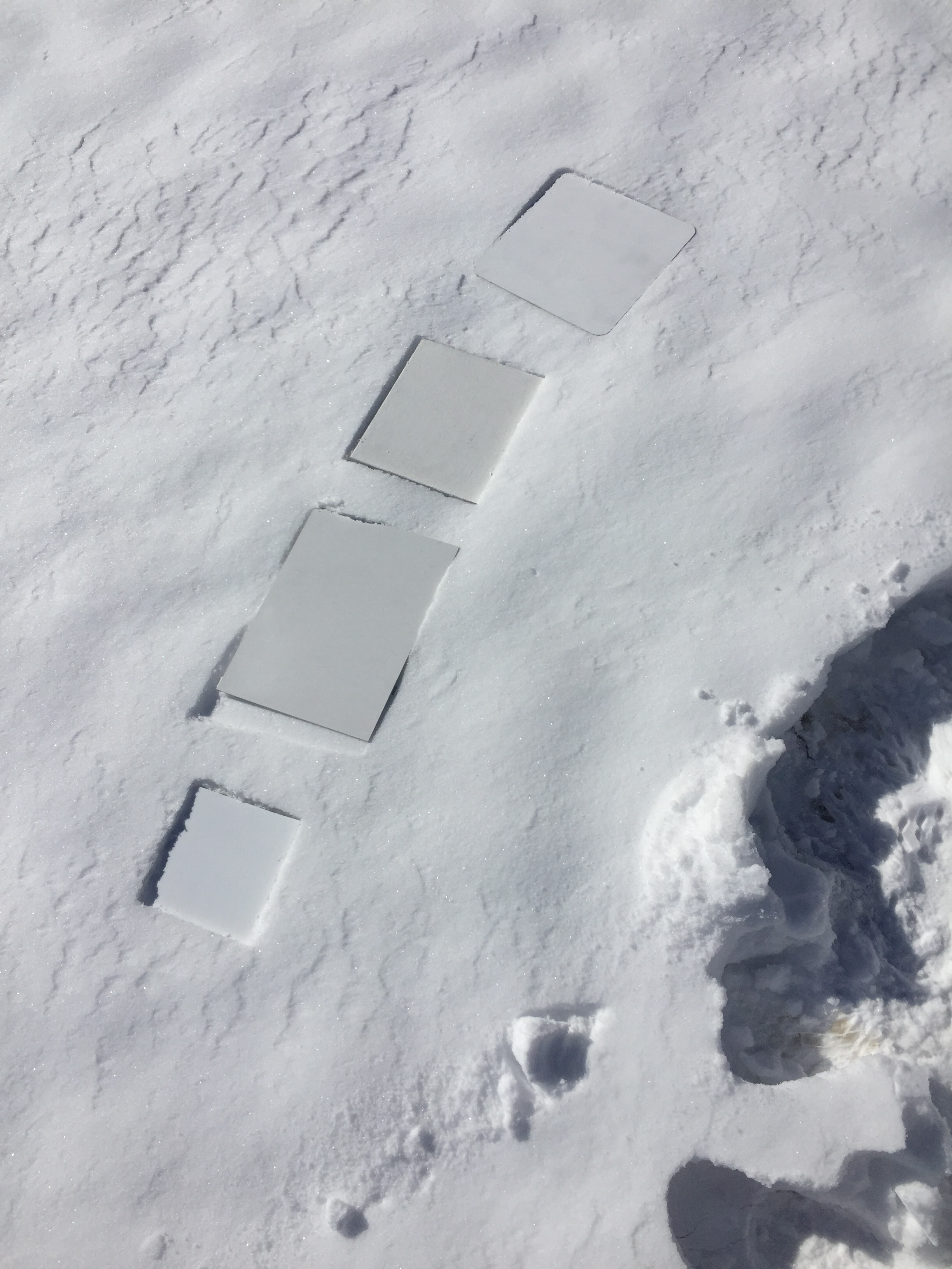 Diffusely illuminated reflection backed teflon target on day old snow. (in the shadow of the Physics building.)