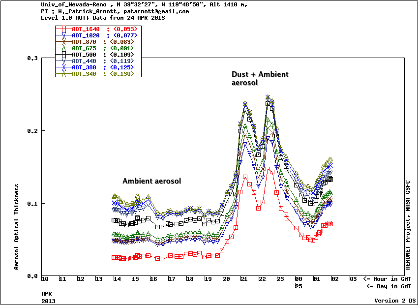 with the UNR Cimel sunphotometer as part of the NASA AERONET network.