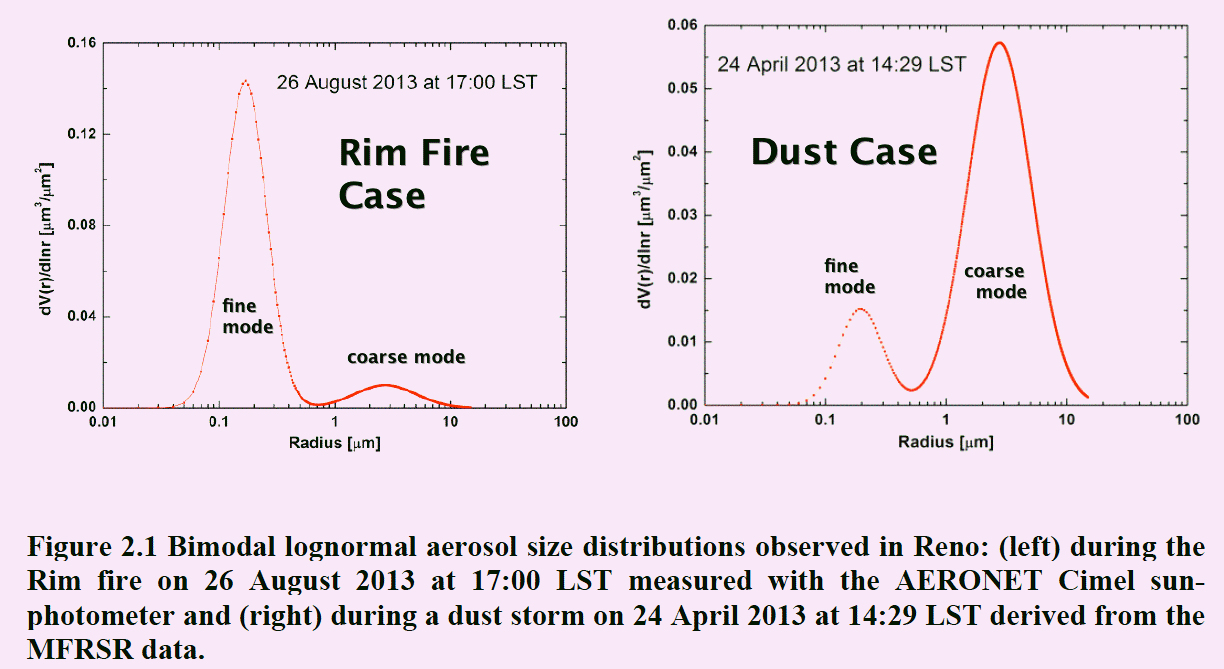 Figure 1.2. Rim fire and dust case study size distributions. Click on image for larger version.